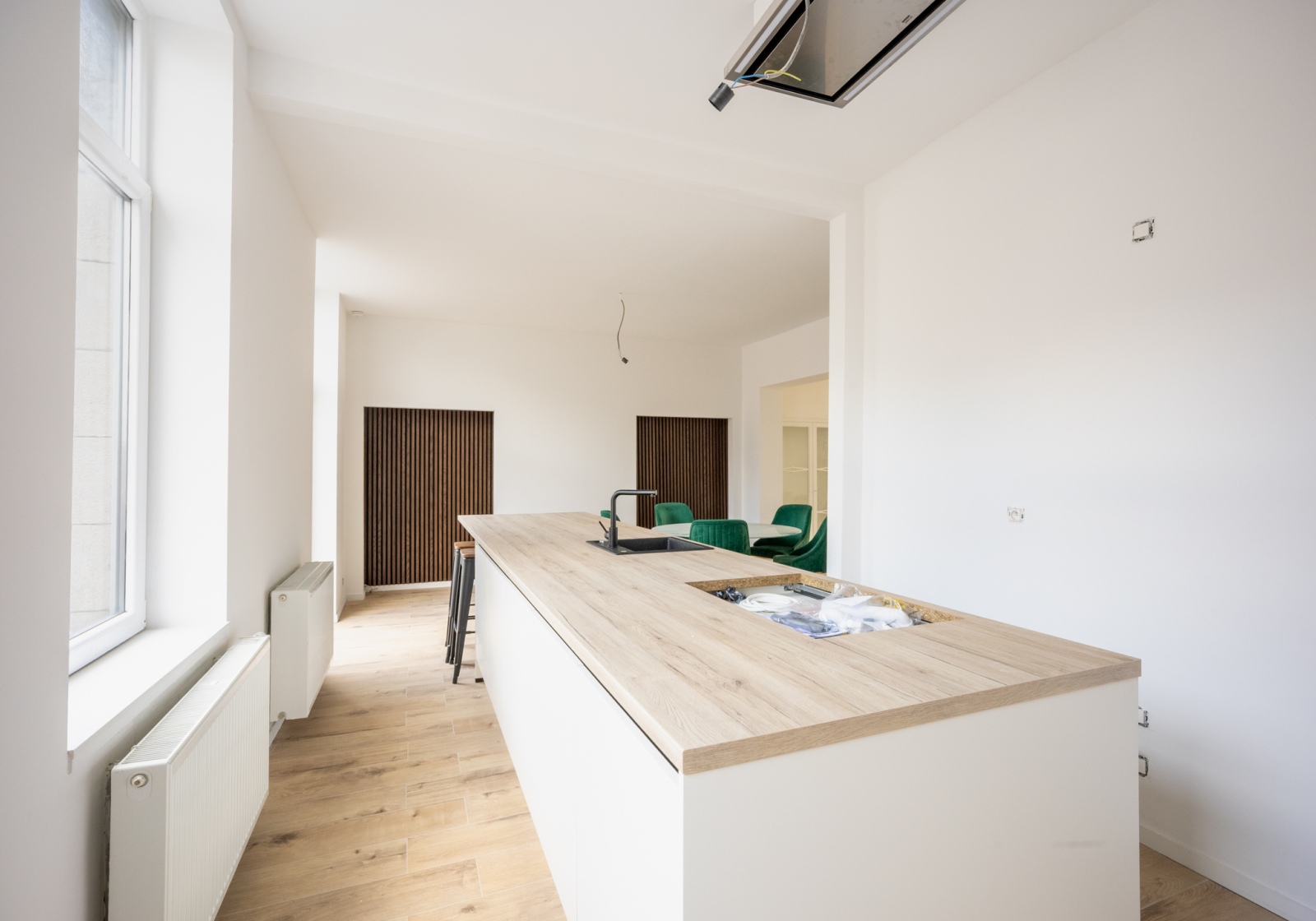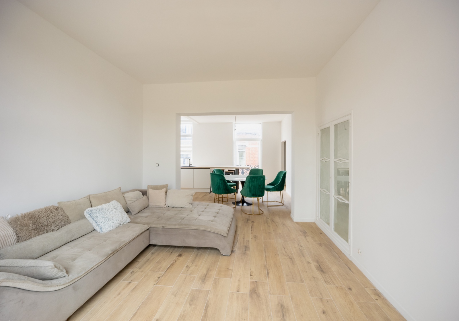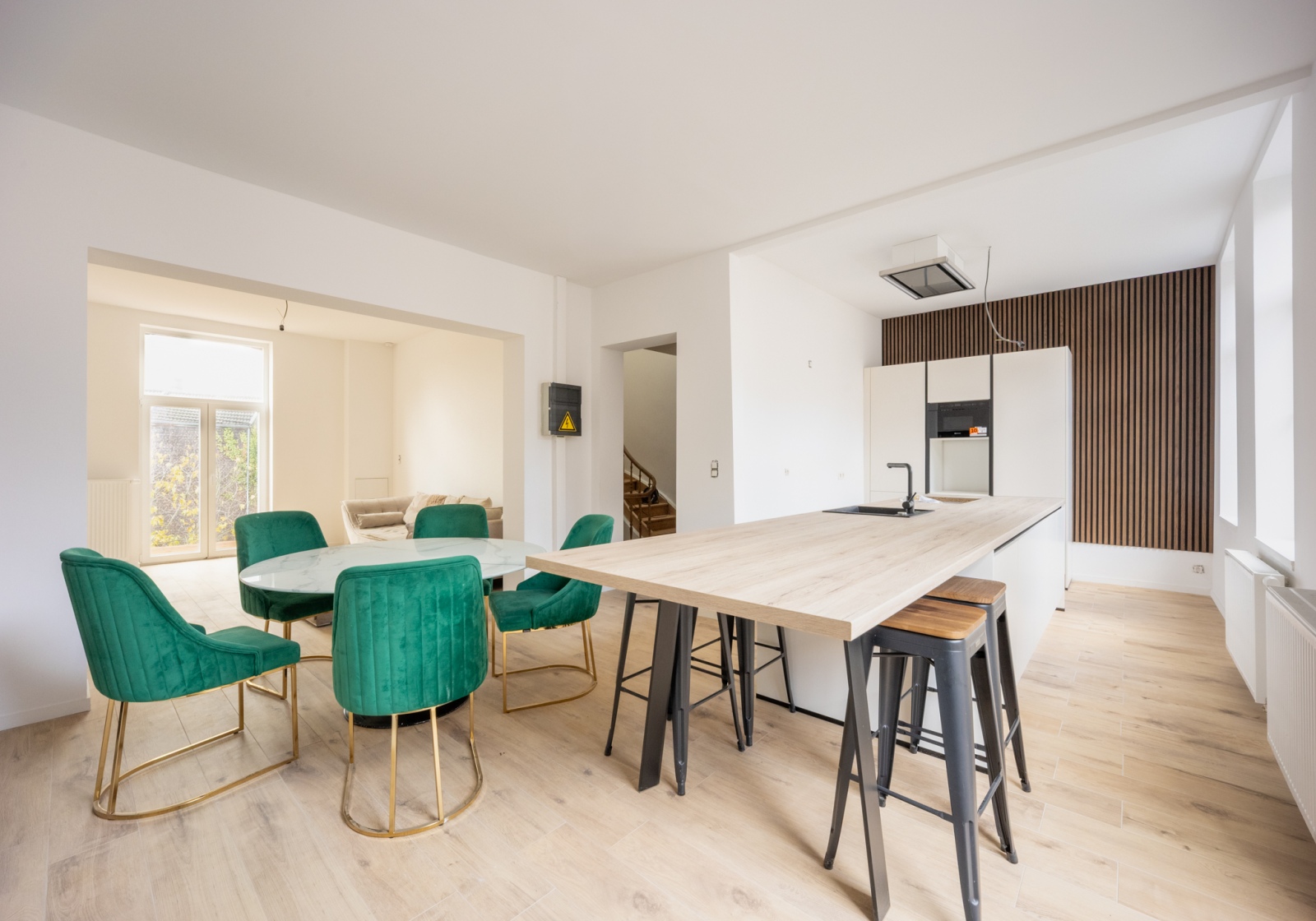 Le vaste espace de vie baigné de lumière s’ouvre sur une cuisine haut de gamme, idéale pour recevoir et partager des moments conviviaux.